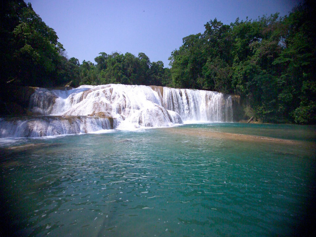 Visit Aguas Azules, one of Mexico's most beautiful natural attractions and Palenque, one of its most important archaeological sites in this full day excursion. First stop after an early start and breakfast en route are the Cascadas de Aguas Azules, a series of shallow pools and waterfalls formed by rimstone dams. The shimmering, limestone rich water, coloured crystalline blue cascades down a series of these natural dams and ends in the clear, waist-deep Shumulhá River. You will have plenty of to swim and paddle in the designated areas.