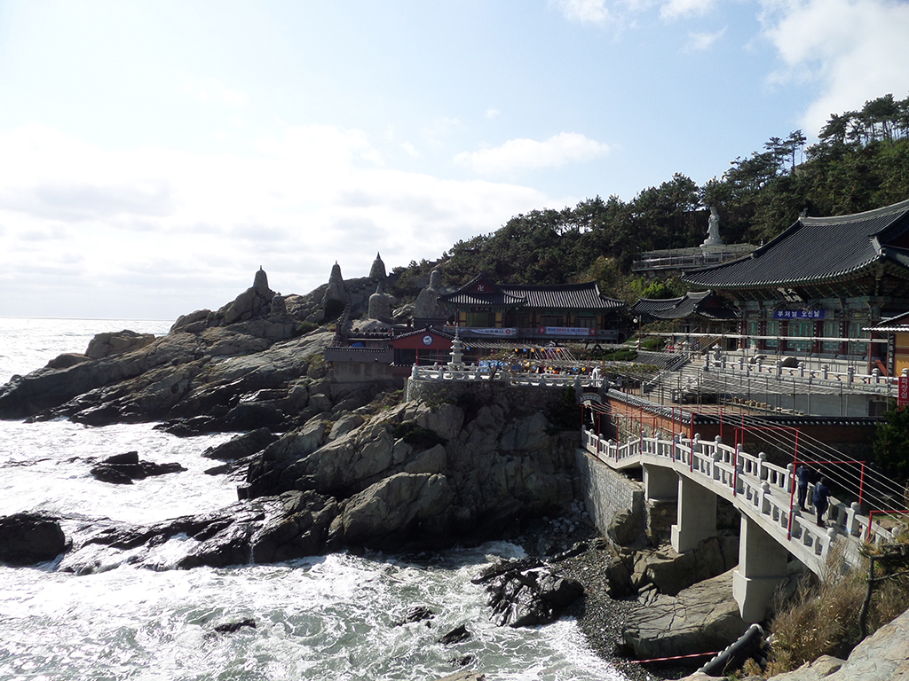 Haedong Yonggungsa Temple is situated on the coast of the north-eastern portion of Busan. This superb find of a tourist spot and temple offers visitors the rare find of a temple along the shore line. Most temples in Korea are located in the mountains. Haedong Yonggungsa Temple was first built in 1376 by the great Buddhist teacher known as Naong during the Goryeo Dynasty. Haesu Gwaneum Daebul (Seawater Great Goddess Buddha), Daeungjeon Main Sanctuary, Yongwangdang Shrine, Gulbeop Buddhist Sanctum (enclosed in a cave), and a three-story pagoda with four lions can all be seen looking out over the ocean.