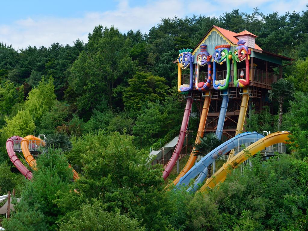 Caribbean Bay is part of Everland theme park. Here, not only can you enjoy swimming and water amusement rides, but you can also relax in hot spring waters all year round. The water park has various facilities, such as the indoor and outdoor pools, a spa, a sauna, a wave pool, and slides like the Water Bobsleigh.