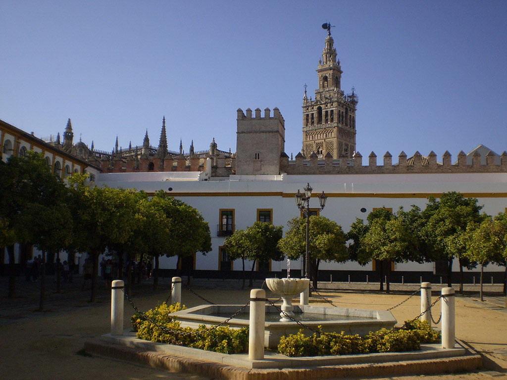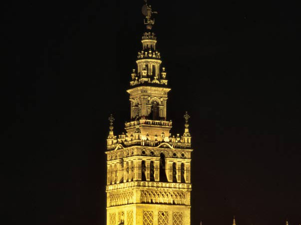One of Seville's best known landamarks is the glorious Giralda, a golden-hued belfry standing over 100m high and orginally modelled on the minaret of the Koutoubia Mosque in Marrakesh. It was originally built in 1184 as part of the Great Mosque and has since had Gothic, Mudejar, Renaissance, Baroque, Neo-Classical and neo-Gothic additions, resulting in the eclectic architectural gem of today.