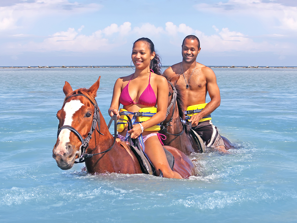 Our friendly guides will share Jamaica’s rich culture throughout your adventure which starts with riding bareback in the warm Caribbean Sea. Then travel to Reading Heights for breathtaking views of the West Island and a stop at a charming church steeped in history. The journey continues to our Jungle Outpost where a tasty Jamaican lunch awaits you.
