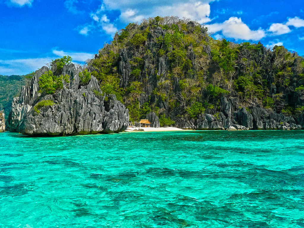 Matinloc Island - Matinloc Island, the longest slim island in El Nido, has a secret beach, which is a pocket of white sand beach at the corner of a sinkhole,that is inaccessible by boat and surrounded by steep rock walls. To reach it, divers must swim underwater through a narrow crevice in a rock wall. At noon, the sun streams in through the opening, allowing a play of light and shadow against its limestone walls.
