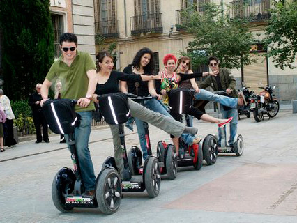 Why not come with us and discover Madrid on a Segway? A Segway is a two-wheeled, self-balancing electric vehicle and totally environmentally friendly. You can whizz along, with no fear of falling off and without the sweat and hassle of cycling. Let the Segway do the work as you enjoy the views. Nothing could be simpler. Faster than walking and a lot less tiring than cycling, the Segway is the vehicle of the future!