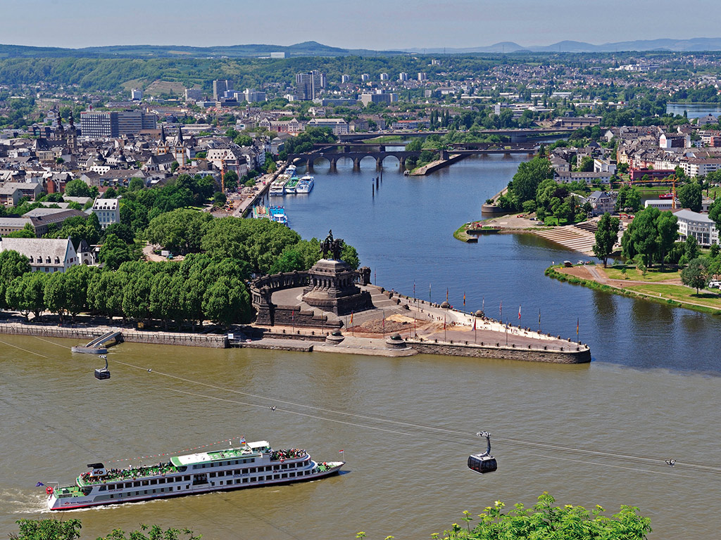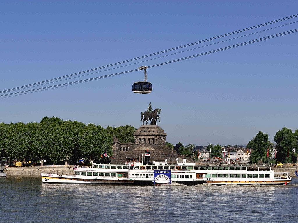 Cable Car and Fortress Sail with the spectacular BUGA Cable Car high over the water from the famous German Corner in Koblenz. Combine your castles and vineyards cruise with a breathtaking cable car ride over the Rhine River to Ehrenbreitstein Fortress, where the main site of the former BUGA Garden Show awaits you with its parks and gardens. Entrance into Ehrenbreitstein Fortress is also included in the package.