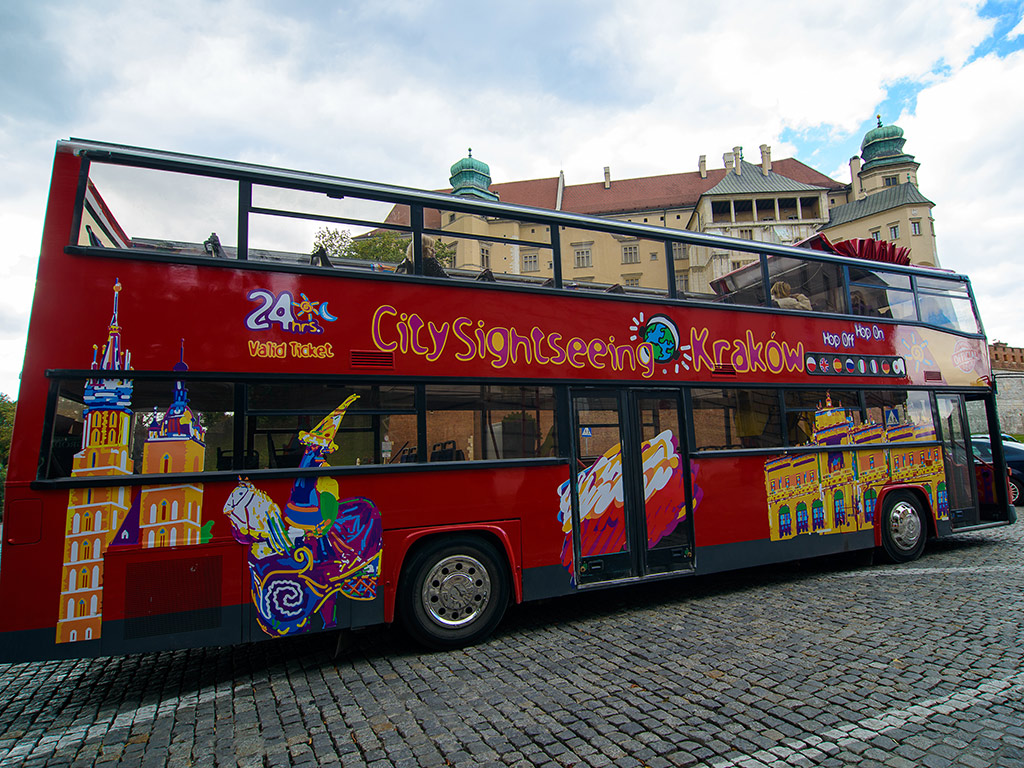 Explore the fascinating city of Krakow on an iconic City Sightseeing bus tour and discover at your own pace what makes this city one of the most charming in Europe. Unravel its secrets as you learn about its remarkable historic city with thanks to the on-board audioguide available in 9 languages Explore the fascinating city of Krakow on an iconic City Sightseeing bus tour and discover at your own pace what makes this city one of the most charming in Europe. Unravel its secrets as you learn about its remarkable historic city with thanks to the on-board audioguide available in 9 languagesHighlights- Explore Krakow at your own pace - Admire the best of the city in record time aboard an open top bus! - Learn interesting facts about the city with the on board audioguide Are you ready for the ultimate Krakow adventure? Hop on board, make your way to the upper deck of our open-top bus and get ready to see the city from a different perspective. Hop off at any one of the 8 conveniently located stops, which will save you time and allow you to see much more of this beautiful city!