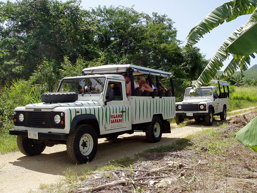 By Land: Your tour of Antigua starts with an exciting 4 x 4 Safari exploring the south side of the country. A guide will show you the beautiful views of Falmouth Harbour and explain the various flora and fauna that you will see on your way through Fig Tree Drive, Antigua’s rain forest.