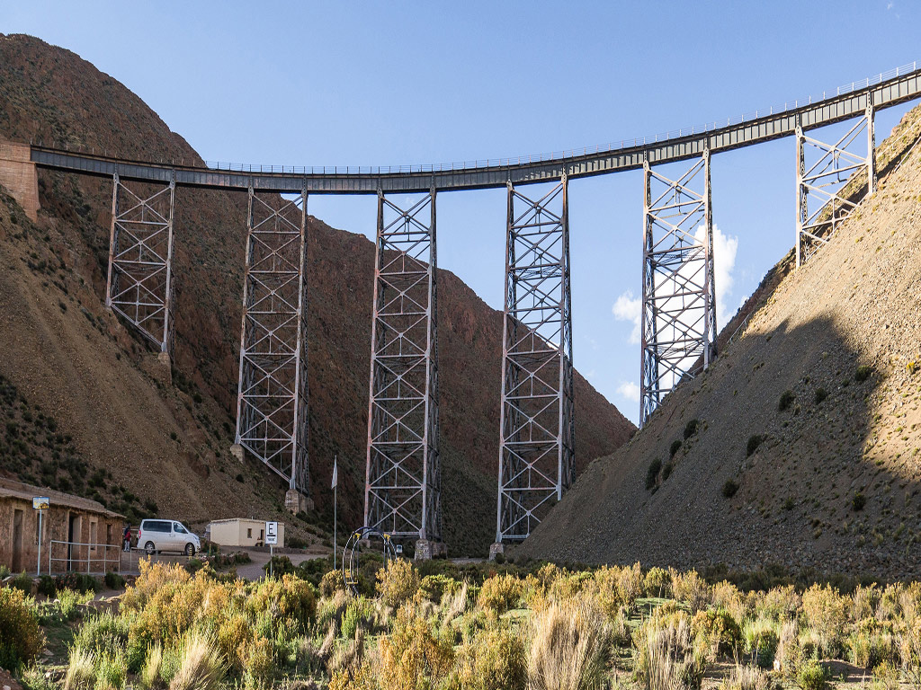 Pass through small mountain villages such as El Candado, El Gólgota and Alfarcito, where white colonial-era churches and old adobe buildings house small farming communities. Arrive at Santa Rosa de Tastil and visit the village’s archaeological museum and the ancient pre-Incan ruins, where housing and streets can still be clearly seen. Continue through Finca La Encrucijada, to ascend the face of Muñano Cliff and arrive at Abra Blanca, at more than 4,000 metres above sea level, where the air is so thin that the locals have the largest lung capacity in the world. Finally, stop at the small mining town of San Antonio de los Cobres, and visit the Polvorilla Viaduct, an incredible rickety steel structure rising 63 metres above the valley floor. Redeem informationVoucher type: E-VoucherE-voucher. Show the voucher on your mobile device to enjoy the activity.LocationStart point: Please call to confirm the pick-up time at least 72 hours prior to the tour.End point: Same as the starting pointScheduleDuration: 7 HoursGuide optionsGuide type: Guide