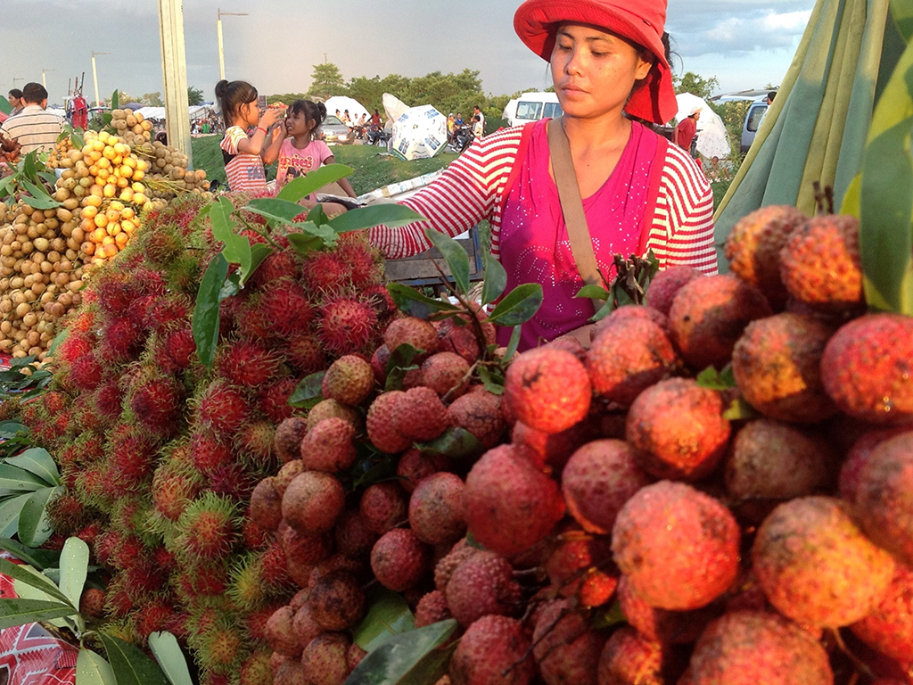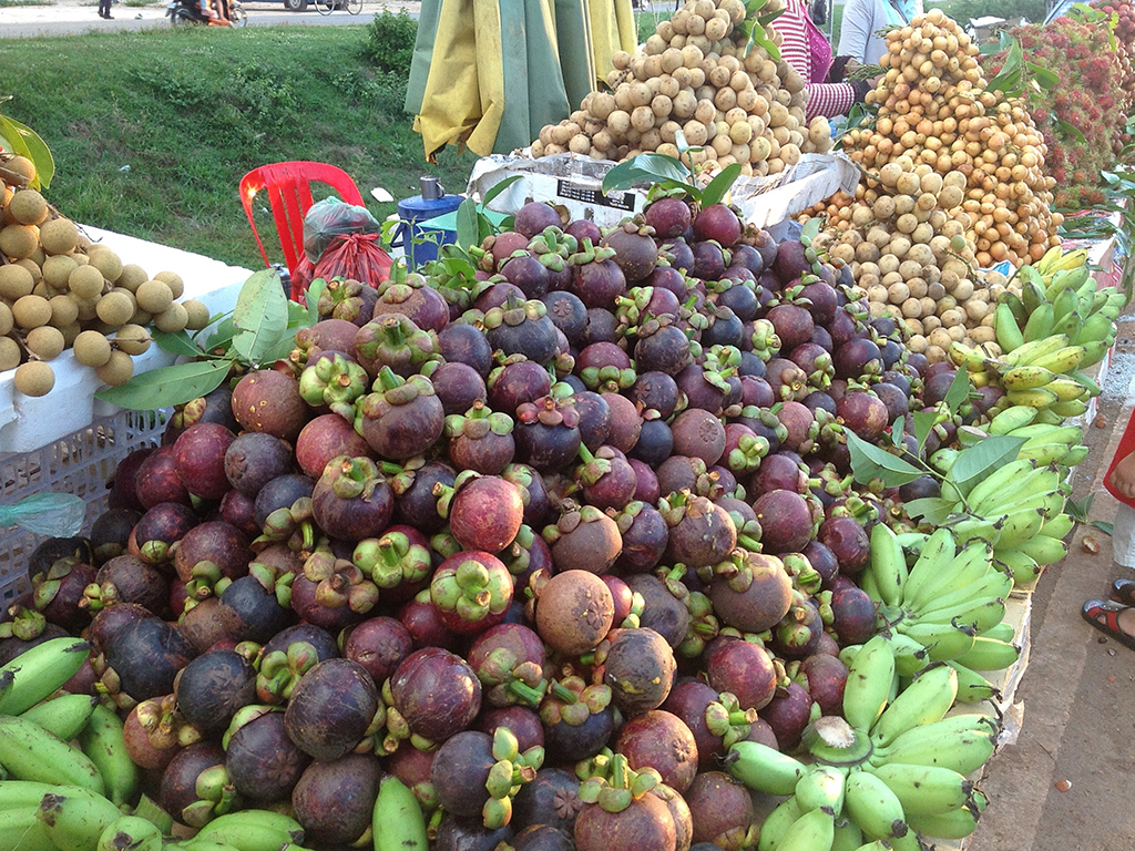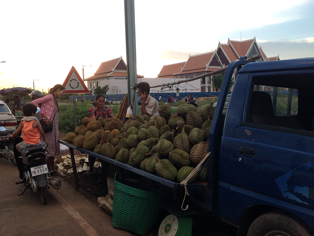 Next, we’ll hit up a local picnic spot where stalls are set up in the early evening selling a multitude of interesting snacks. As we wander around, you might see fried tarantulas, which are usually enjoyed with a cold beer; fried crickets, which taste like potato chips; barbecued meat on skewers; Khmer Fried Chicken; green mango served with chili and salt; ducks eggs; barbecued corn; and deliciously sweet purple mangosteen.