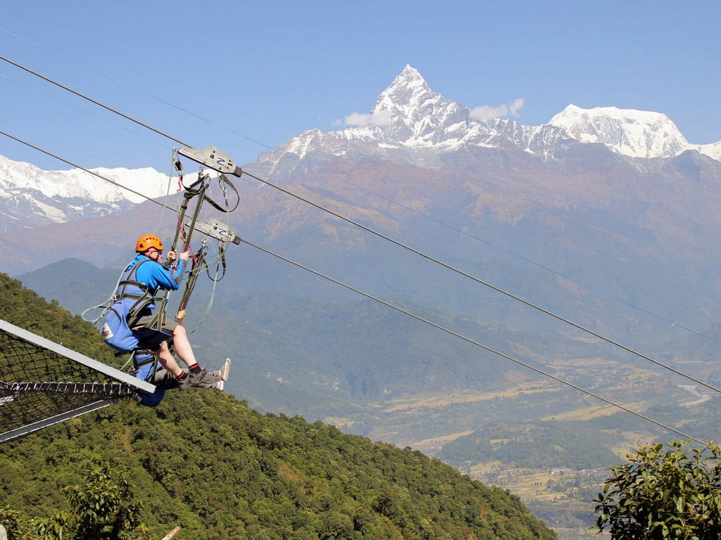 Experience the Steepest, Fastest and the Longest Zipline in the world, Zipflyer Nepal is the Ultimate Zipline experience in the heart of the Himalayas. It has an initial incline of 56 degrees which makes it the steepest Zipline in the world, a total length of 1800 metres and a vertical drop of 600 metres. Experience the Steepest, Fastest and the Longest Zipline in the world, Zipflyer Nepal is the Ultimate Zipline experience in the heart of the Himalayas. It has an initial incline of 56 degrees which makes it the steepest Zipline in the world, a total length of 1800 metres and a vertical drop of 600 metres.Zipflyer is one of the attractive adventure activities in Nepal. And has been attracting tourists with different opportunities for adventure sports. It has ushered in yet another new product for adventure tourism. The Zip-flyer is a must for any adrenaline junkie, at a phenomenal 1860 metres in length, it is the longest in the world, and starts from Sarangkot at a height of 1625 metres and ends at 960 metres in the Hemmja plain.
